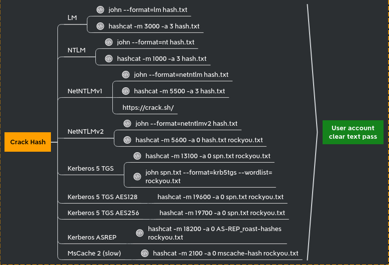 hashcat -m 1000 -a 0 hash ~/Documents/Tools/SecLists/rockyou.txt