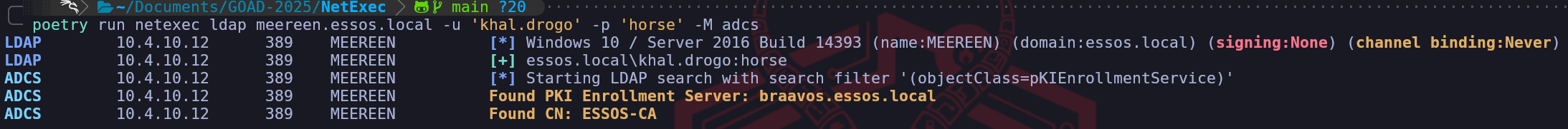 Why this distinction matters: This finding changes our targeting strategy for the entire phase. It tells us that Meereen (the Domain Controller) handles authentication and Kerberos, but Braavos handles the PKI plumbing.