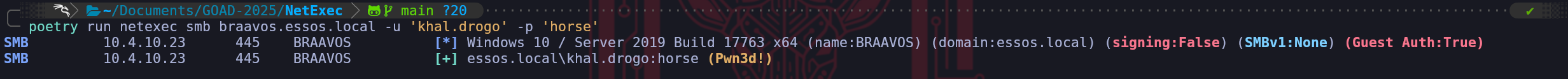 Meereenand we can see that we do have (Pwn3d!) which means that we are Domain Admin. - Client Authentication (