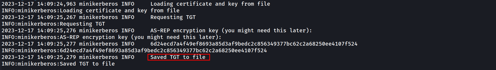 Now let’s use the administrator certificate to authenticate into the domain controller and request the Ticket Granting Ticket.
