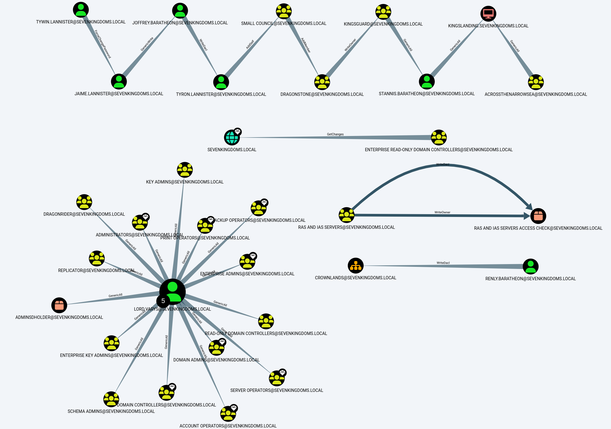 To start we will focus on the sevenkingdoms killchain of ACL by starting with tywin.lannister (password: powerkingftw135)