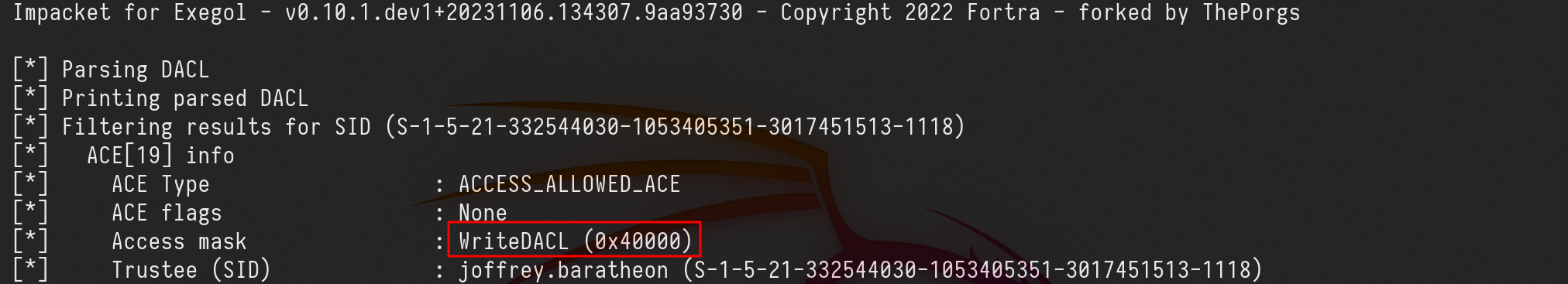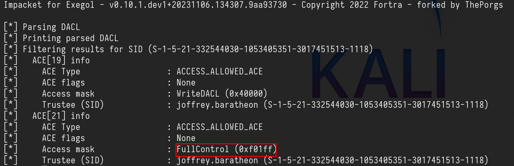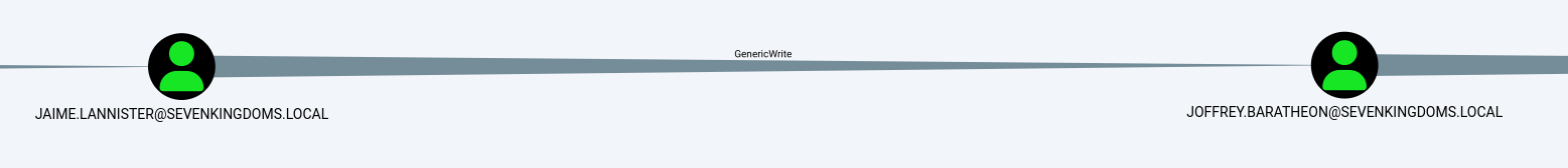 Previously we were able to get access to user Jaime exploring ForceChangePassword right. the next step is to do an horizontal privilege escalation exploring GenericWrite from user Jaime to user Joffrey.