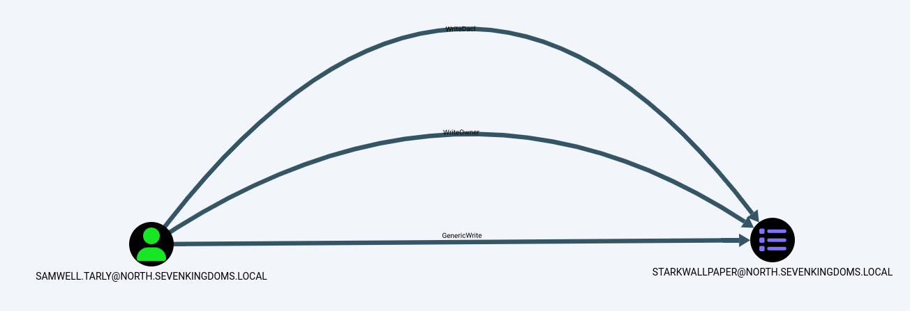 Above screenshot we see that user Samwell.Tarly has WriteDACL/WriteOwner/GenericWrite rights over Group Policy Object StarkWallpaper.